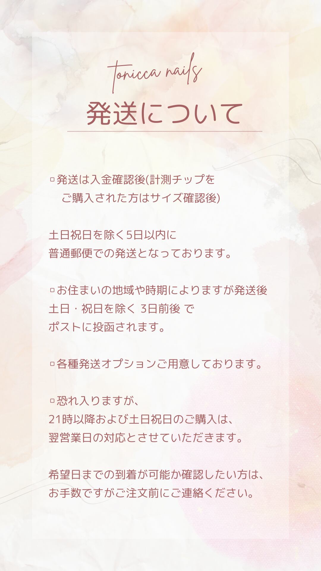 当店のネイルチップは入金確認後(計測チップをご購入された方はチップのサイズ確認後)