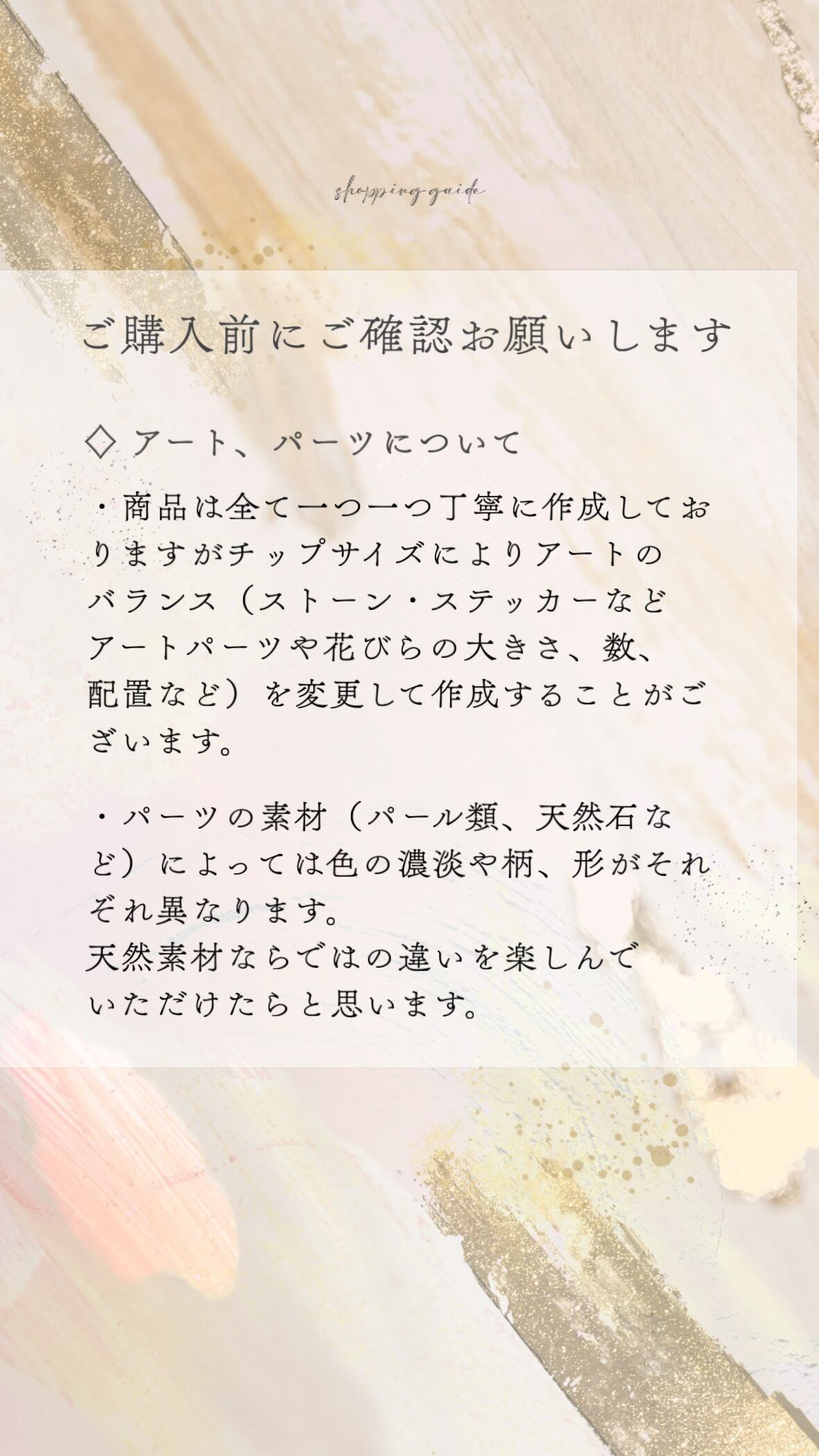 (ストーン・ステッカーなどアートパーツや花びらの大きさ、数、配置など)を変更して作成することがございます。