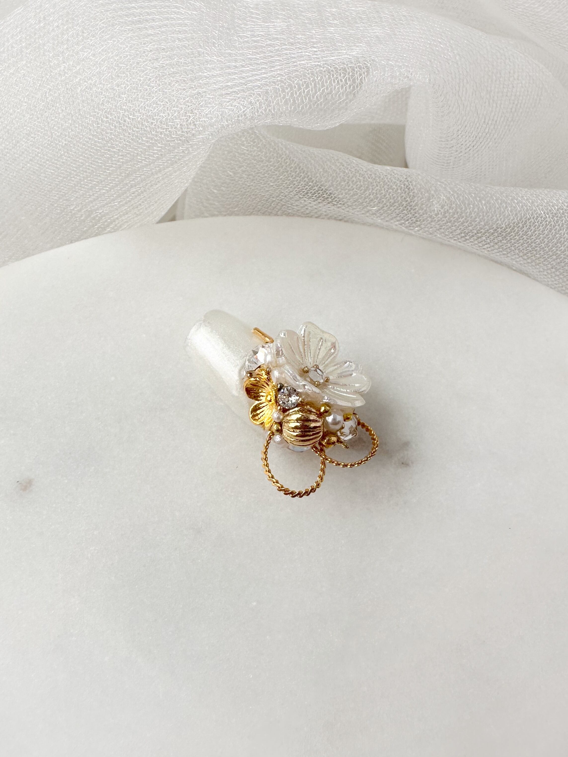No.38 Ceremony press on nails/和装、成人式、結婚式、ホワイト、ゴールド、フラワー、お花、ゴージャス、シンプル、フレンチ、リボン、ビジュー、パール、ラメ、ウェディング、ブライダル、振袖、袴、卒業式、入学式、水引き、前撮り