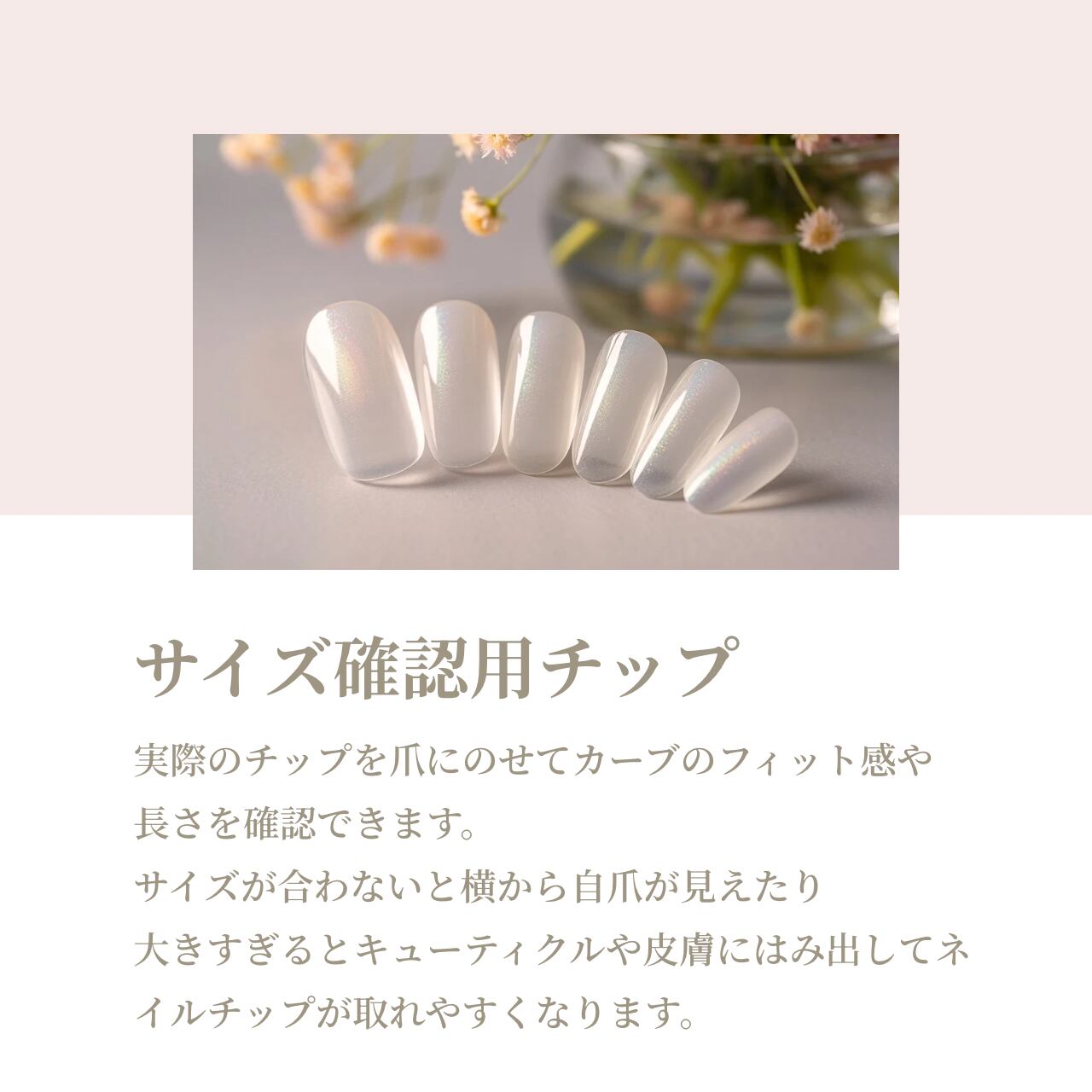 ♢当店のネイルチップは全品サイズオーダー制となっております。そのためサイズ選びは非常に重要です。サイズ確認用チップをぜひご利用下さいませ。